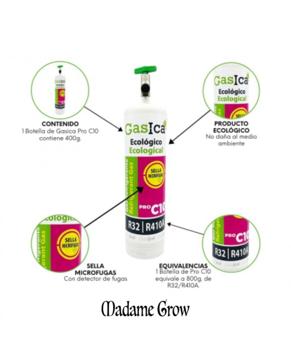 Das GasIca C10 PRO ist eine ökologische und effiziente Lösung zum Nachfüllen von Klimaanlagen in Haushalten. Es wurde entwickelt, um vollständig mit den Kältemitteln R410A und R32 kompatibel zu sein. Dieses Gas ist ideal für diejenigen, die eine nachhaltige und umweltfreundliche Alternative suchen, ohne die Leistung ihrer Klimaanlagen zu beeinträchtigen.