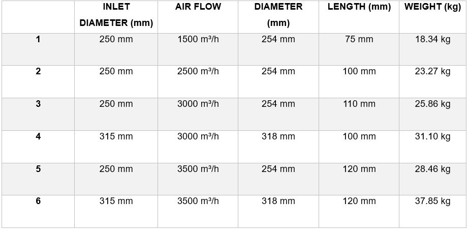 - Variety of Sizes and Airflows: Available in diameters ranging from 250 mm to 315 mm, and airflows between 1500 m³/h and 3500 m³/h. This flexibility allows it to adapt to different extraction systems and ventilation needs.